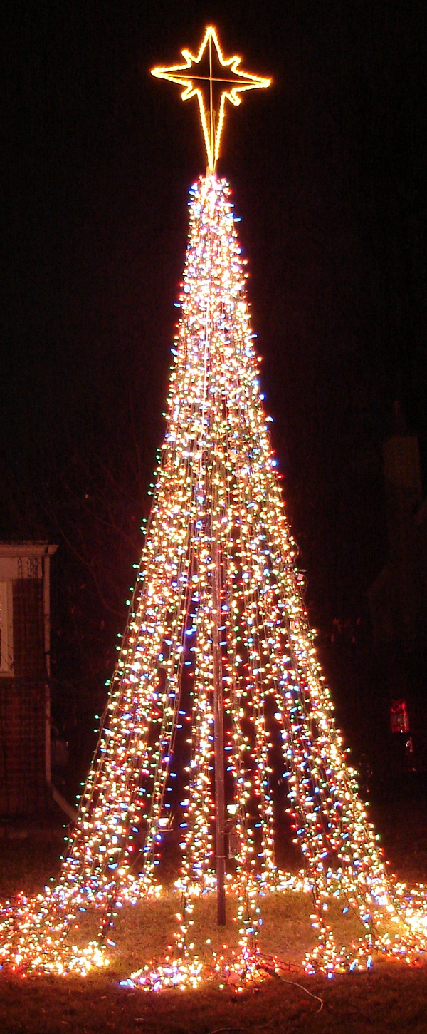 This year we narrowed up the base of the Megatree a bit. We also added a set of guy wires after 2011's heap-o-megatree on 1/2/12.