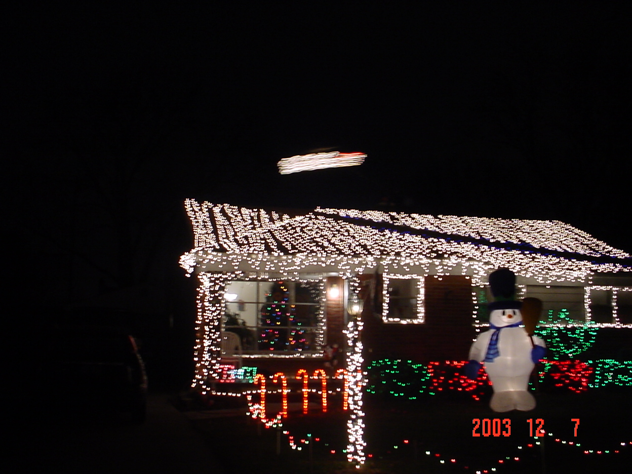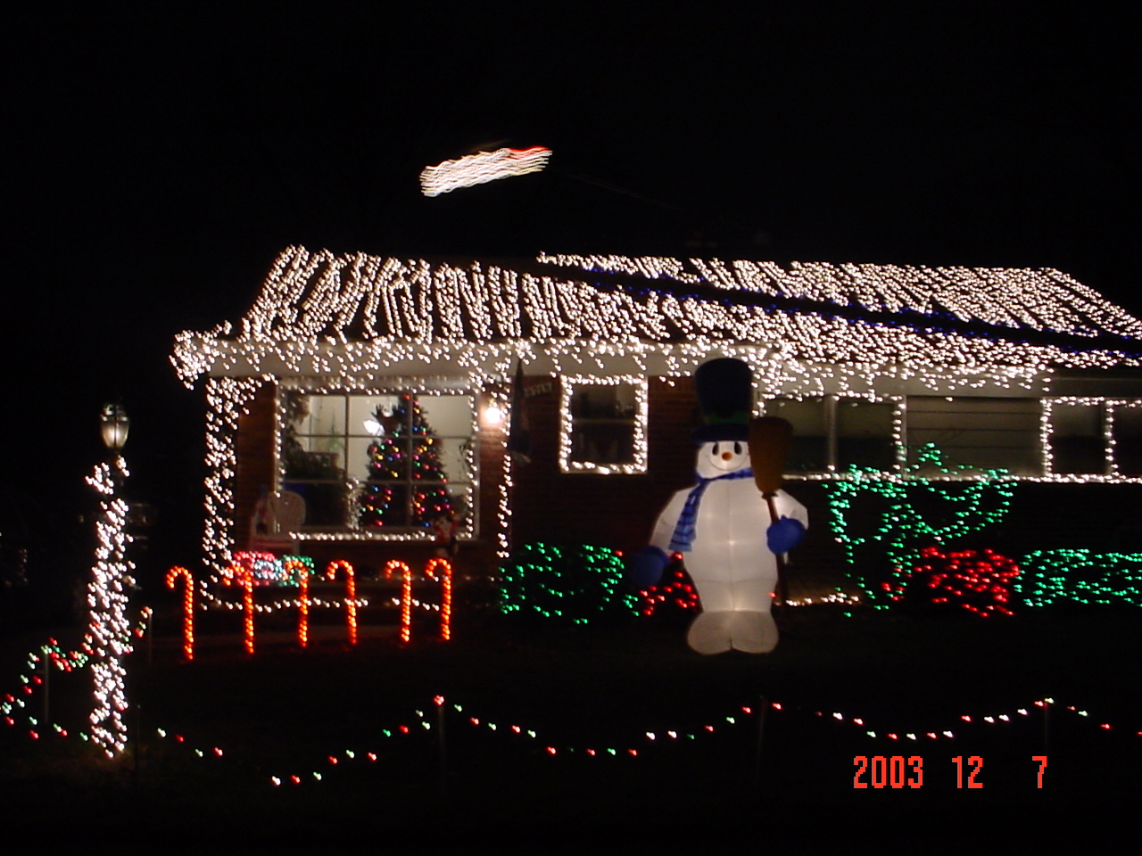 In 2003, 12,500 lights were put on the house for Christmas. It took about 65 hours to put up the lights. It was a major project. After it was done there was a lighting ceremony with my eldest son flipping the switch.