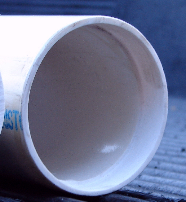 The top sides of the posts were machined to fit the acrylic globes with a slip fit. This was done on a mill with a boring bar that will cut up to 3.5". It took about 15 minutes to setup and about 1 minute each tube. PVC machines very nicely, in fact on a couple of the tubes I had a one piece curly Q. After making all the holes needed to mount the spotlights, globe light socket, and rope light tiedowns, the pipes were painted white with rustoleum plastic paint.