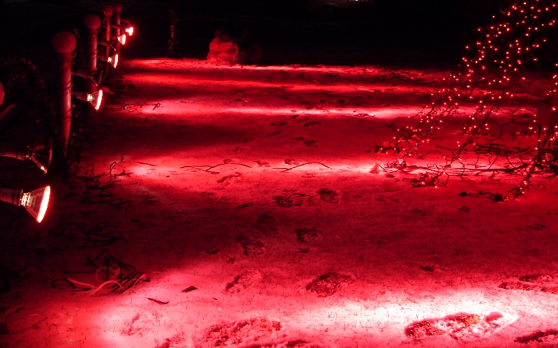 This is a picture of the spotlights in all red mode. The snow really amplifies the amount of light. Although the grass shows up quite well.
