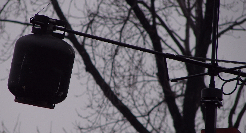 Any plastic container full of water.( The freeze-thaw cycling will split the bottom , and drop a large block of ice on the roof and the awning causing everyone to drop to the floor in fear of the roof caving in.)