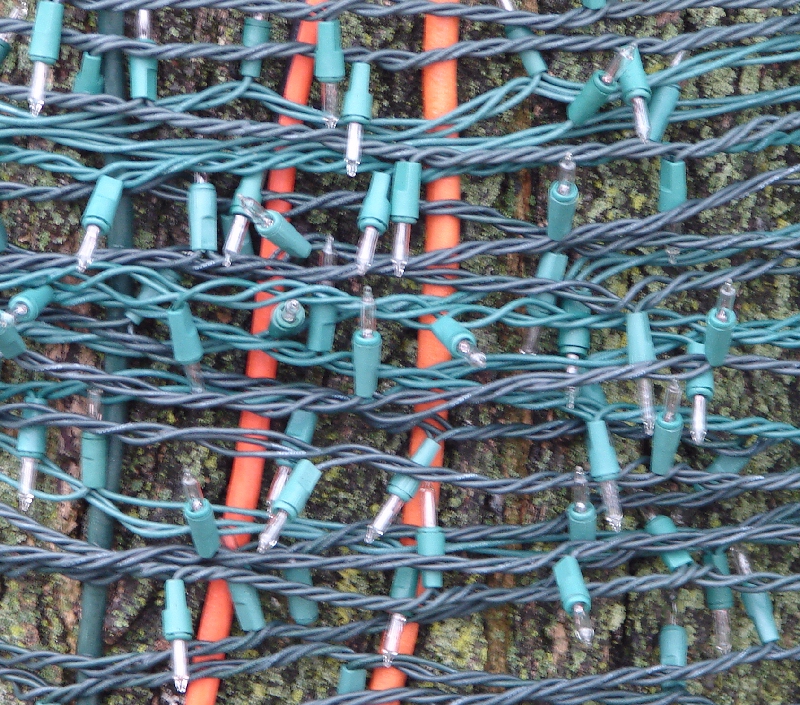 The other kind of obvious way to put up lights is to wrap them on. I've done this for years and I've learned a couple of tricks for doing that. The first what some call child abuse but they kind of like it. Get a string of lights and give it to a child. Most children love to get dizzy. We even make kind of a game of it. See who can walk the straightest after wrapping a strinng on the tree. It works for me...? However if I have no helpers I pre-ball the lights before wrapping. This sllows the lights to be unwound instead of untangled as you wrap the tree or pole.