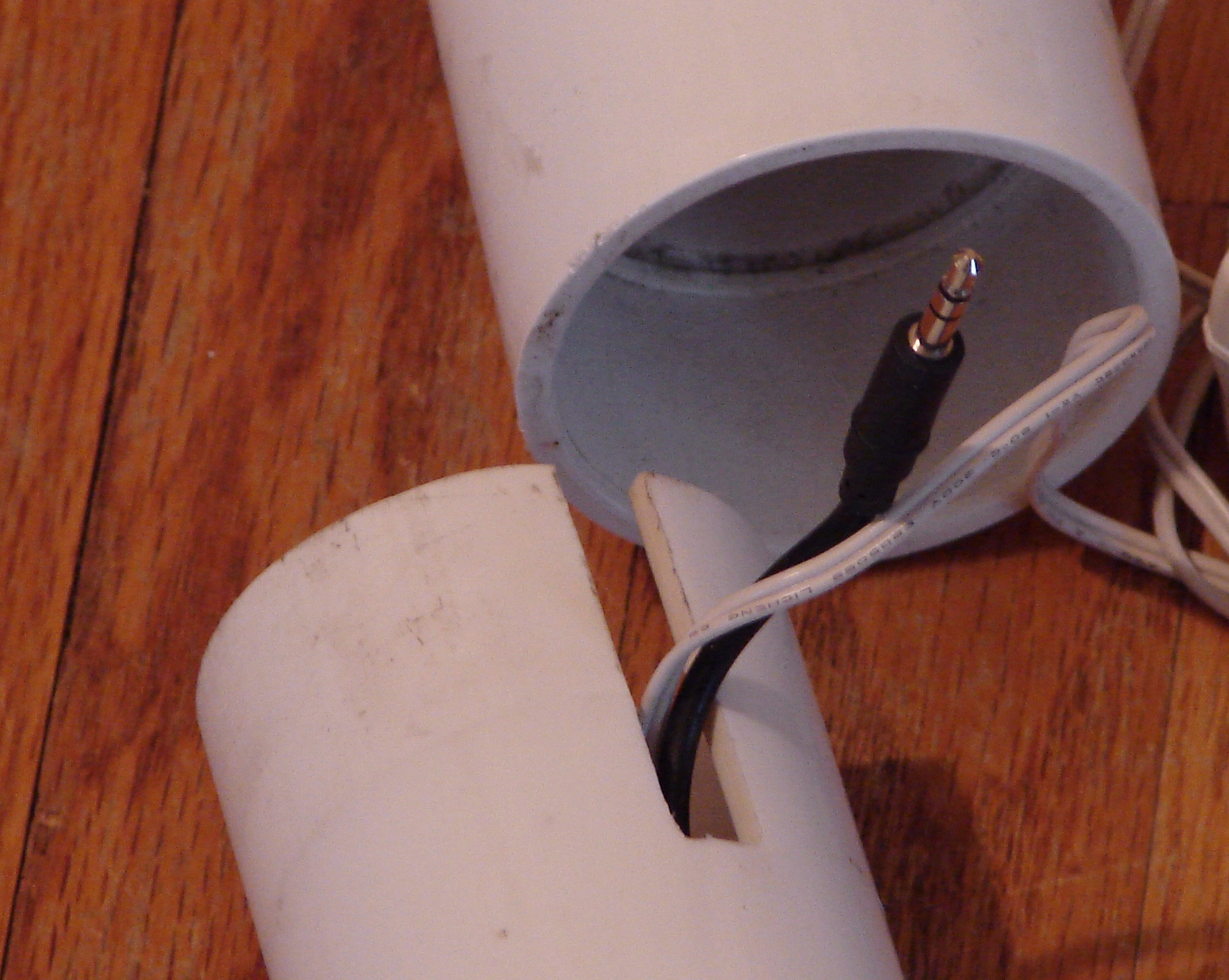 I tuck the tunecast up inside the 2" PVC pipe and suspend it with the antenna. This is tied in the cap to hold it up which also keeps the antenna nice and stretched out..
